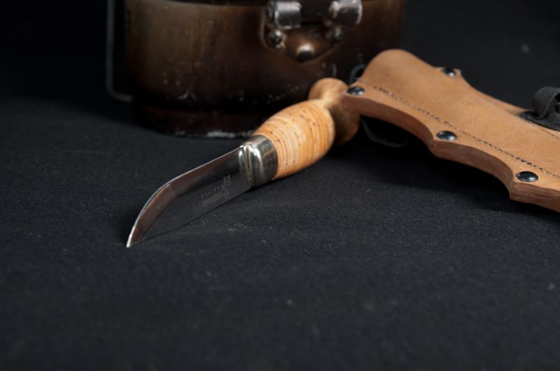 Клинки зделанные из тепловозных клаппонов,оттянул в кузне.Рукоять на кинжале из рога северного оленя,на другом красное дерево,береста и проставки из нержавейки.