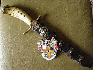 длина клинка 19см толщина 4мм ширина 2,5 рукоять рог оленя инкрустирована камнями (рубины в квадратной огранке) к сожалению пракчически все фотки в таком разрешении Сообщение отредактировано Zawchoz: Jan 7 2012, 20:09 Вложенные эскизы изображений -------------------- "Погибает лишь тот, кто смирился с поражением!" ©