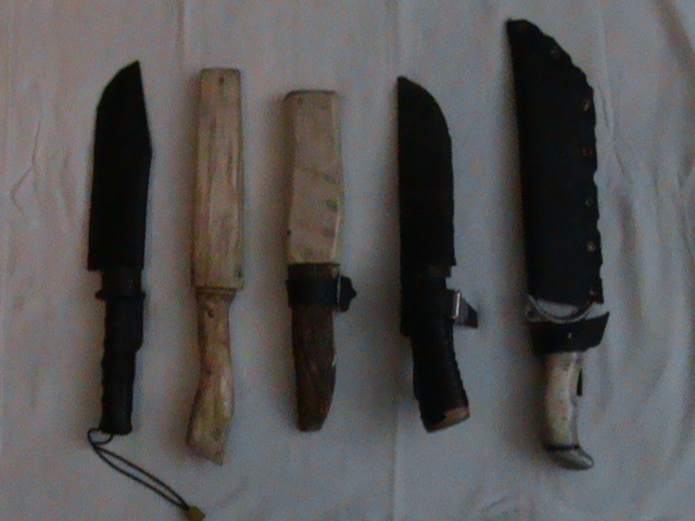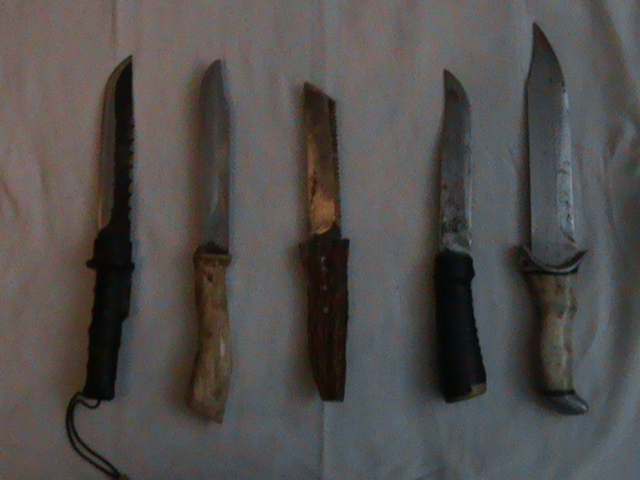 Решил засветить свои ножи, сделал все сам, в гаражных условиях, с помощью наждака и дрели, для самого большого понадобилась сварка. Может кому пондравиться, расскажу про каждый, сталь, полотно для распилевания рельс, на большом, полотно от фуганка, хрупкие, но крепкие ручки, острые лезвия и смотря где использовать, другой стали не было.