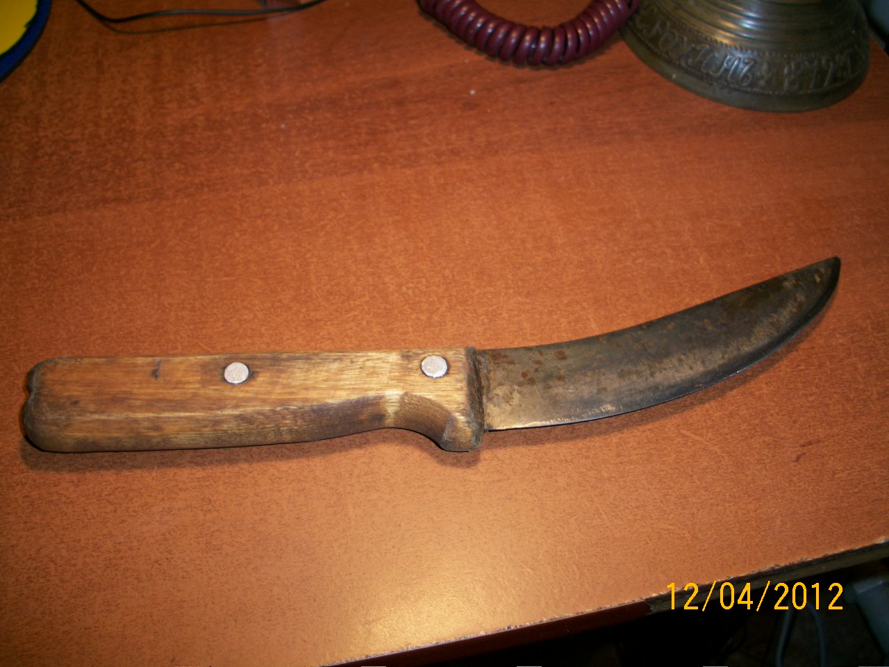 QUOTE(Stepan Razin @ Mar 21 2012, 19:48) Не утерпел решил показать тоже вот такой нож.Сталь не знаю какая,темнеет но не ржавеет.Лезвие остегивается и взамен крепится-шило,отвертки(разные),ножевка.Короче много разных инструментов.Где они у меня щас пожалуй и не найду.Показать бы. Этот нож прошел со мной огни и воды.Выручал не раз.Щас беру его с собой на копалово.И вот-что самое важное,он сделан так-что как его не бросай он все одно воткнется. Извинити за качество фото-просто наспех снял. Ничо не видно -------------------- Одна голова - хорошо... две - лучше... а три - мы не прокормим...
