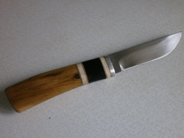 QUOTE(vale @ Feb 2 2013, 19:50) Вот мой труд,сталь пружинная 65г. Нож собран аккуратно, дерево не понял какое. Белые проставки, разной толщины, это не правильно. Про ножны говорить нечего, наверное и сами понимаете, они ужасны. Вывод: нож сделан руками, для себя и это хорошо и это правильно. Надо продолжать. |