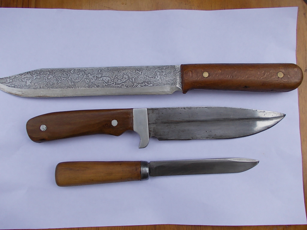 Справа нижний из мех. пилы, хорошие ножи. Мяснику на рынок делал, он в восторге, лучше покупных, хоть и невзрачный. На других нерж 40Х13 (58-62ед ), слева второй сверху -65г, всегда в работе . Ножны прошил плохо . Да, холодным оружием не являются! Сообщение отредактировано Пыж: Mar 9 2013, 16:54 Вложенные эскизы изображений |