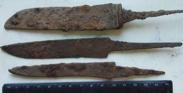 Окей спорить не буду, и литературу нет желания кубатурить, находка клинка и не одного были найдены при шурфе по 12-13 веку. Если найду фотки, всех клинков, то выставлю, чтобы не быть голословным. А уж как они туда попали одному богу известно. Пусть будет 20 века )))