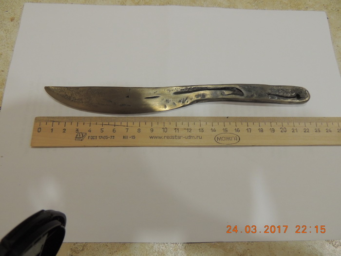 QUOTE(Ctrannik @ Mar 15 2017, 14:19) Я наоборот, решил руки приучать без приспособы, так надежней, а то с приспособой не всякие спуски сделаешь, а если руки научить правильно работать, то тогда можно что угодно изваять Ну этт - да... Вот нажжжужал (первый блин)... ![]() Это скан (мне так проще)... С первого опыта - перетоНчил - риски уже не сточить Попробовал еще спуски сделать не от обуха (другой клинок) - сложно... -------------------- Одна голова - хорошо... две - лучше... а три - мы не прокормим...