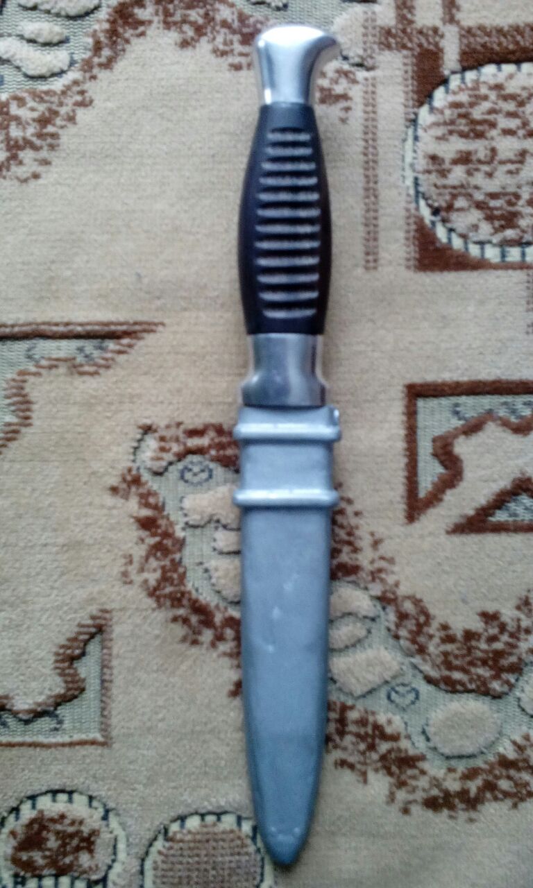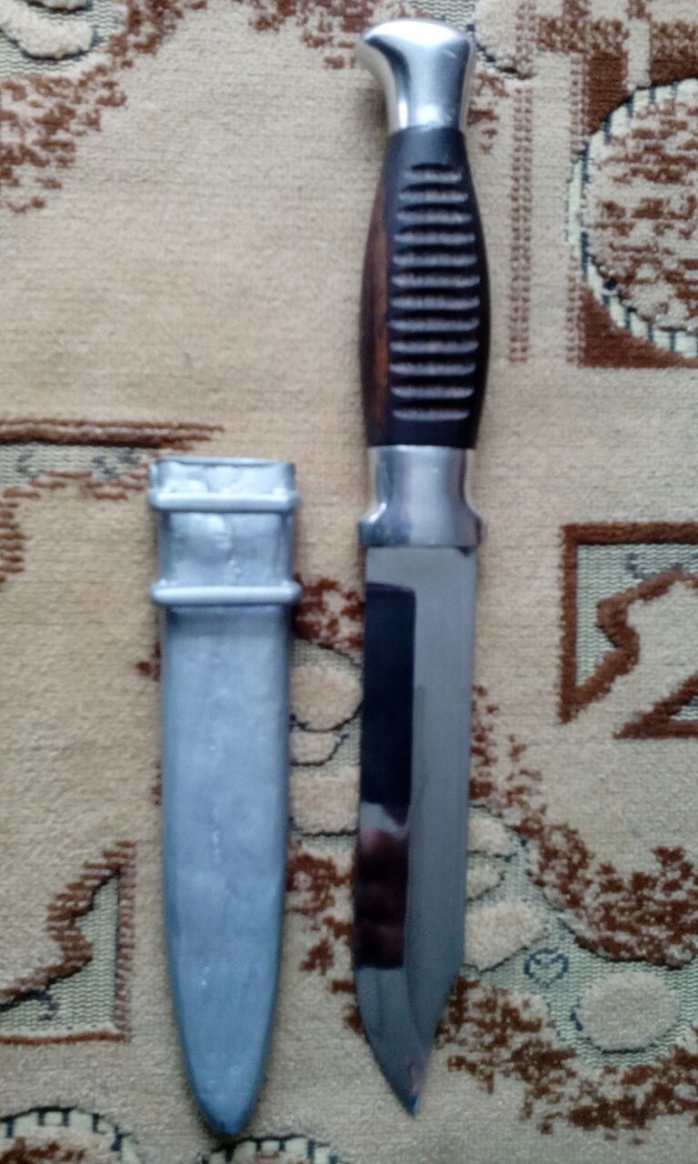 Выдалось время , сделал ещё один режик, лезвие клапан с тепловоза ,навершие и втулка дюраль, черен текстолит, ножны дюраль.