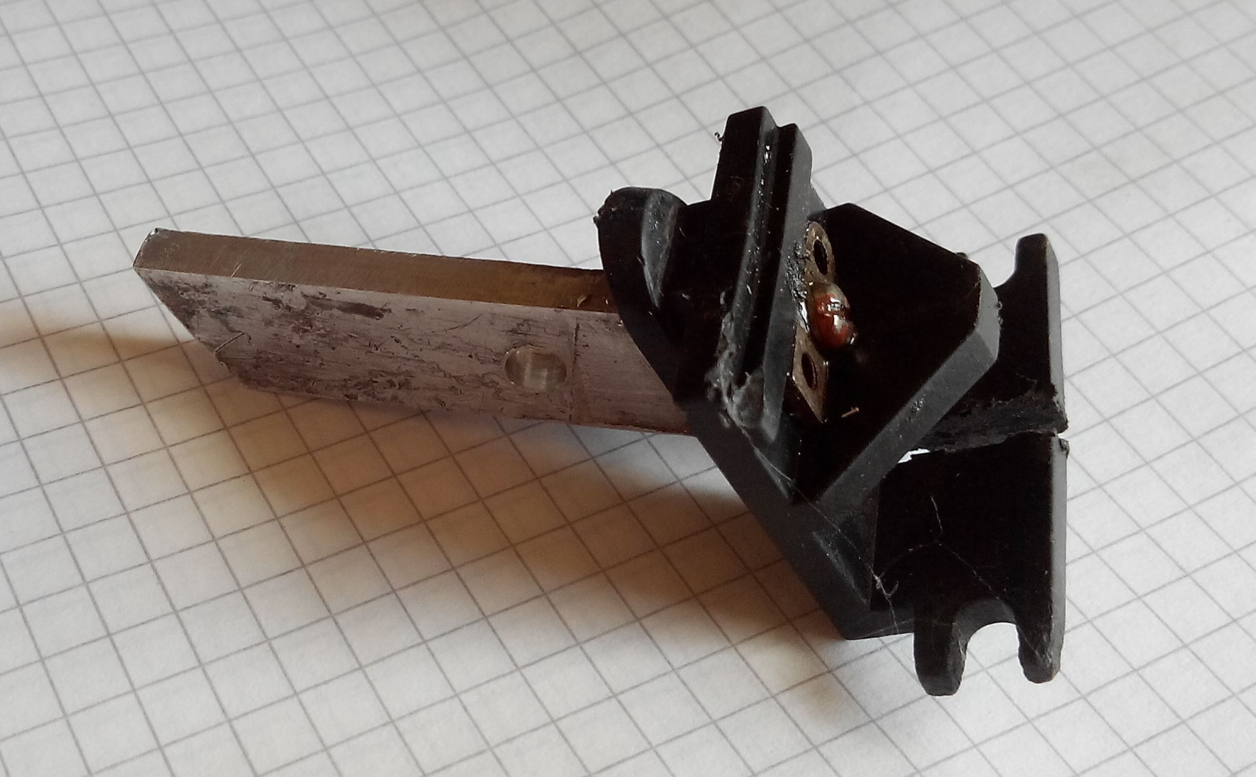 Так отверстие под пластину выжег,всё подогнал,поймал угол наклона. Теперь осталось скрепить верхнюю и нижнюю алюминиевые части. Сажать на клей или эпоксидку весьма ненадёжно,поэтому в верхней части пластины которая стыкуется с пластиком просверлил отверстие,нарезал резьбу и скрутил 2 части шурупом,дабы конструкция держалась крепче под шляпку шурупа положил пластинку выполняющую роль шайбы и щели залил эпоксидкой. Ну и в финале просверлил с боку алюминиевой пластины отверстие под шуруп (который скрепляет 2 половинки ручки) Сегодня прибор уже был отремонтирован. Проще конечно купить эту запчасть и не заморачиваться так с выпиливанием и вытачиванием,я бы так и сделал будь магазин неподалёку,но в Грунтовике крепления в наличии нети когда он будет-неизвестно,а копать уже сегодня надо