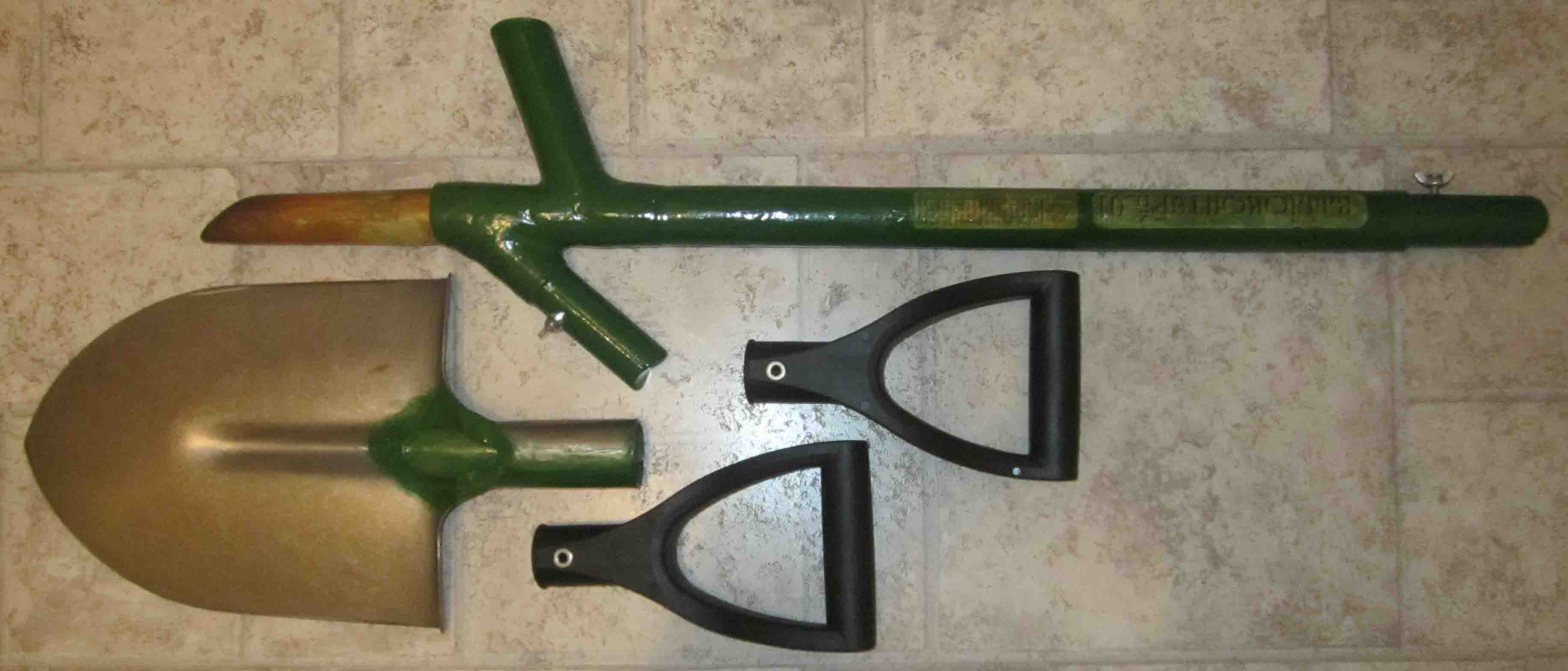 При попытке купить нужную мне лопату произошло довольно обычное дело - то, что действительно хотелось бы,- не производится и не продаётся. И не потому, что моя привередливость выше нормы. А, скорее, потому, что, как и во многих других областях, "конь ещё не повалялся" как следует. Продаваемые образцы не в полной мере отвечают высоким требованиям, а производители исходят из совершенно других, своих, критериев. Вывод прост - сделать свой вариант. К тому же, нежданно, появилось чуток времени в связи с новым идиотическим законом. (Жду с нетерпением новых законов о налогах на сиськи, воздух и дефекацию). Понятно, что пессимистам теперь такая лопата и не требуется. Поэтому, инфо будет полезно только для оптимистов и реалистов. Да, чего там, пусть и Белые Архи тоже будут счастливы. Мы ж добрые и не злопамятные (хоть память и хорошая, да и злость порой не детская). _____________________________________________________________ Итак, идеологическое ТЗ примерно такое (предложения и идеи принимаются с радостью): 1. Высокая эргономичность. Копать должно быть очень удобно, с минимумом прикладываемых сил и нагибаний; 2. Вес в пределах (1,0 -:- 1.5) кг. Очень легкая лопата плоха - например, перерубать корни сложнее. Тяжелая - надо же её носить. Да и шевелить ею иногда; 3. Складная или быстро собираемая и разбираемая конструкция. Должна помещаться в обычный (не специализированный) рюкзак; 4. В собранном виде должна быть полноразмерной (для обеспечения п.1) 5. Должна обеспечивать удобство при копании одной рукой. По крайней мере, на начальном этапе копа. 6. Высокая надёжность, прочность, долговечность. Делаем на "века". 7. Должна быть эстетична. Или даже изумительной красоты. 8. Стойкая к коррозии, бензину, маслу, плесени, соли, водке, кетчупу, моче и ядовитой крови врагов. 9. Должна обеспечивать магическую поддержку в работе и защиту от недобрых сил. Ко всем пунктам ТЗ прилагается смайлик - Посмотрев немногочисленные новации по этой теме в инете, и скомпилировав достойные предложения (всем новаторам - Большое Спасибо!), после недолгих инженерных раздумий был создан первый экспериментальный образец. "Кладокоптер - 01". Вид полностью разобранной лопаты. Высота черенка выбрана под мой замечательный рюкзак. Вид полностью собранной лопаты. Вес - 1.5 кг. Высота - 120 см. Гайка с "барашком" склеена с винтом М6 из-за того, что просто винты с "ушами" купить не удалось. Лэйбл с оберегающими магическими свастиками древних славян. Получилось не особо эстетично. Но, не настолько, чтобы переделывать лэйбл. Посему, объявляется, что так и задумано, винтажно и т.п. Заказчик всегда прав, а это я сам. ТТХ и пояснения к конструкции. "Нож" выбран покупной. Самый прочный из продаваемых. А именно, - большая штыковая лопата из титана толщиной 2 мм. ОАО "Урал". Не дешевое удовольствие, но юзеры отзываются положительно. Мне обошлась в 1800 + 300 (доставка из инет-магазина) руб. Ну, мы ж не экономить собрались, а шедевр ваять. Подробнее, например, здесь http://www.websnab.com/item.php?id=31 Такая большая (при правильной заточке) обеспечит выкапывание за раз большого "кома" земли, и дальше, в большинстве случаев, возможно, углубляться и не придется. Также, большой "ком" - дополнительный процент на целостность находки. Ведь чем меньше нож, тем больше вероятность её повредить. Остальные комплектующие типа ручек, черенок - покупные. Черенок - сухой берёзовый, диаметром (36-:-38) мм. Стоит э