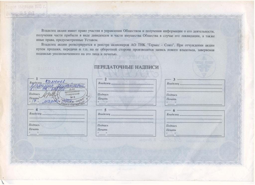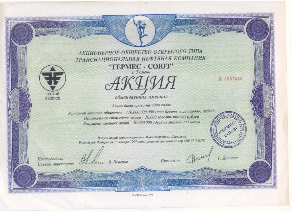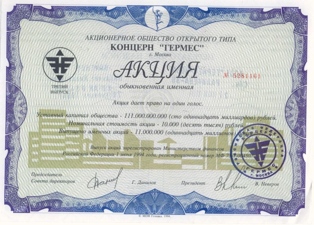 Две акции Гермес - разные. Защищённая бумага с водяными знаками