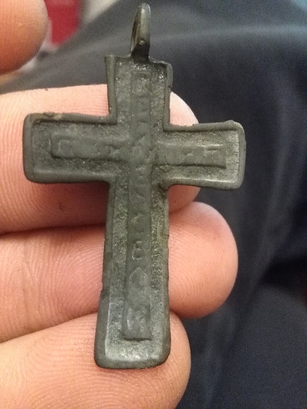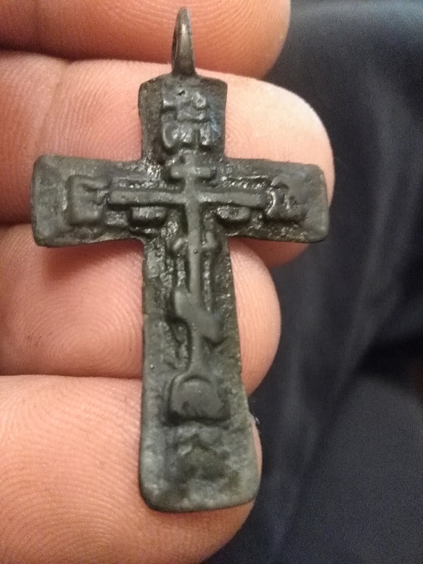 Володя, Сергей - можете идентифицировать? Сюжет простой и массовый, но материал - олово или сплав олова. Я его нашел когда искал Масляную горку. если крестик старый - то, похоже, нашел.