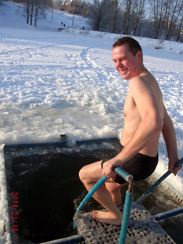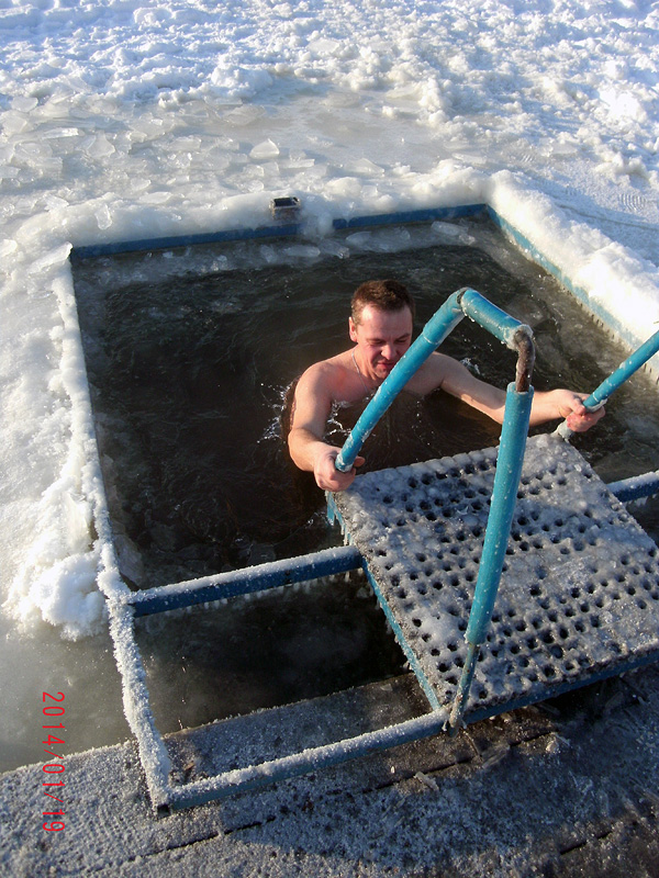 После полутора литров сэма, решил посидеть на улице, подышать свежим морозным воздухом. Ну и свалился в сугроб да заснул в минус двадцать пять, через два часа, правда, проснулся... Замёрз, что пипец как замёрз. Но оттаял, то есть проснулся, слава ангелу моему.... А нырял то - по трезвому... И в следующем году, буду нырять по трезвому! |