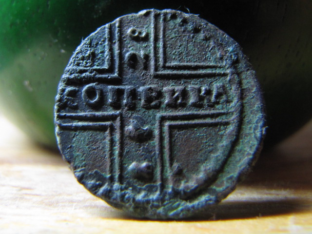 QUOTE(Копоподвох @ Sep 5 2014, 10:38) А чегой копейки такие чёрные Шибко серной мазью перемазал . Они темно зеленые...песчанный сохран,на том месте империя вся в такой патине. |