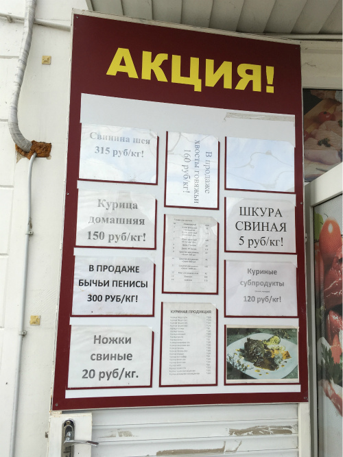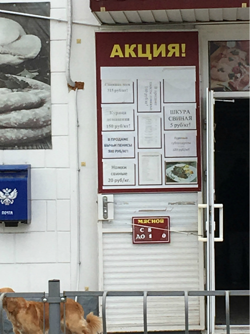 QUOTE(Водолаз @ Nov 11 2017, 16:10) у нас на море похожая картина, а проезжая мимо мясного увидел интересный продукт не поленился подойти сфоткать А чё кричат, что цены в Крыму бешеные... У нас подороже будут (про бычий кер не знаю, не видел). Бычий ПЕНИС, .... миленько так Сообщение отредактировано waldburger: Nov 11 2017, 17:48 -------------------- Вы там, где вы есть, и тот, кто вы есть, потому что вы решили тут быть.