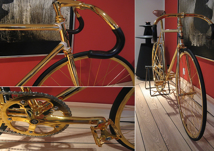 QUOTE(henfas @ Jul 30 2013, 17:35) Чет я таких лисапэдов не видал по цене Жыпов.А если и есть,то лучше Жипчик небольшой,все педали крутить не надо. Сергей ты ошибаешся Самый дорогой велосипед в мире принадлежит компании Aurumania – в созданной ею модели велосипеда абсолютно все без исключения детали и части покрыты толстым слоем чистого золота. Плюс к тому же вместо обыкновенных катфотов были использованы всемирно известные кристаллы Swarovski, чья общая численность превышает 600 штук. Помимо бриллиантов и золота высшей пробы, здесь он также укомплектован натуральной кожей премиум-качества Brooks ручной отделки — из неё выполнены ручки на руле и седло. Достоверно неизвестно, уверен ли производитель Aurumania в том, что её велосипеды будут использоваться по своему прямому предназначению, однако на все экземпляры компания предоставляет безоговорочную гарантию сроком на 10 лет. Рыночная стоимость такого велосипеда находится на уровне в 100 тысяч долларов. Вложенные эскизы изображений -------------------- Если Вы еще не сидите, то это не Ваша заслуга, а наша недоработка.