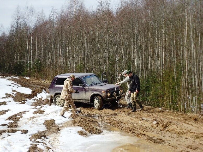 Лесная дорога оказалась даже круче , чем я себе ее представлял. Утром пробрались по замерзшей еще дороге, дернули по ходу севшую ниву и добрались удачно до самой поселухи, а вот обратно за день все растаяло и началось жесткое трофи в темноте через лес на протяжении 4 км. Адреналина хапнули думаю все не меньше моего. Спасибо всем за компанию и отличный выезд. Фотки все у ребят, может кто и выставит, а то у меня дома компа нет
