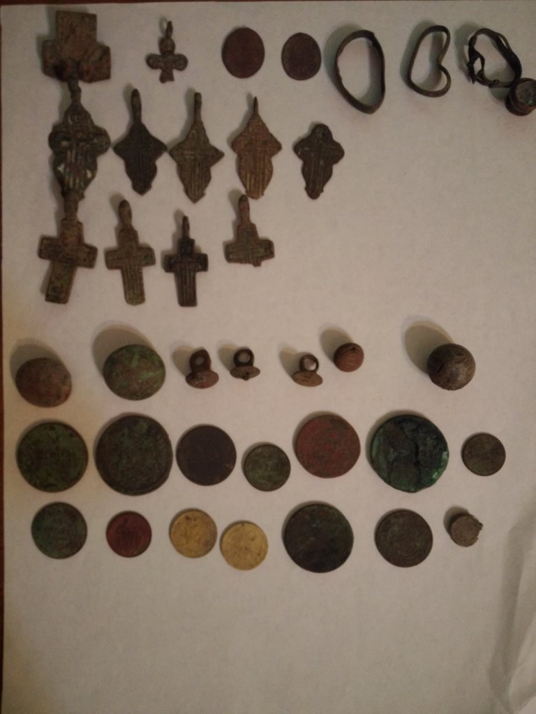 QUOTE(-=Zero=- @ Sep 1 2014, 12:01) Всем привет , как-то так прошли мои выходные ... Теперь вопрос , как выпрямить кольца и чем лучше очистить горелую монетку ( второй ряд снизу и предпоследняя, опыта с такими монетами у меня не было). Заранее всем спасибо. Неплохо покопал, молодец. По чистке не подскажу. С горелыми все печально |