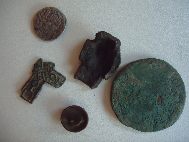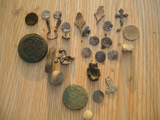 Наша субботняя поездка. Те, что справа - Серегины (companion), слева, в том числе шикарный сломанный перстень-коловрат и непонятный дядька-божок (он лежит на столе вверх ногами) - Ванины (feodos) и внизу чутка моего.