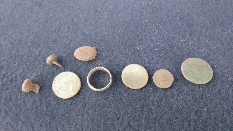 Всем приветы! В субботу выбрались погулять по полям картофельным, давно не гулял, руки отваливаются, ноги оловянные)) Как прям сезон открыл!! Колечко серебряное(обручалка), ну и какаликов чуть. Копеечка крестовая попалась, но убитая в усмерть((