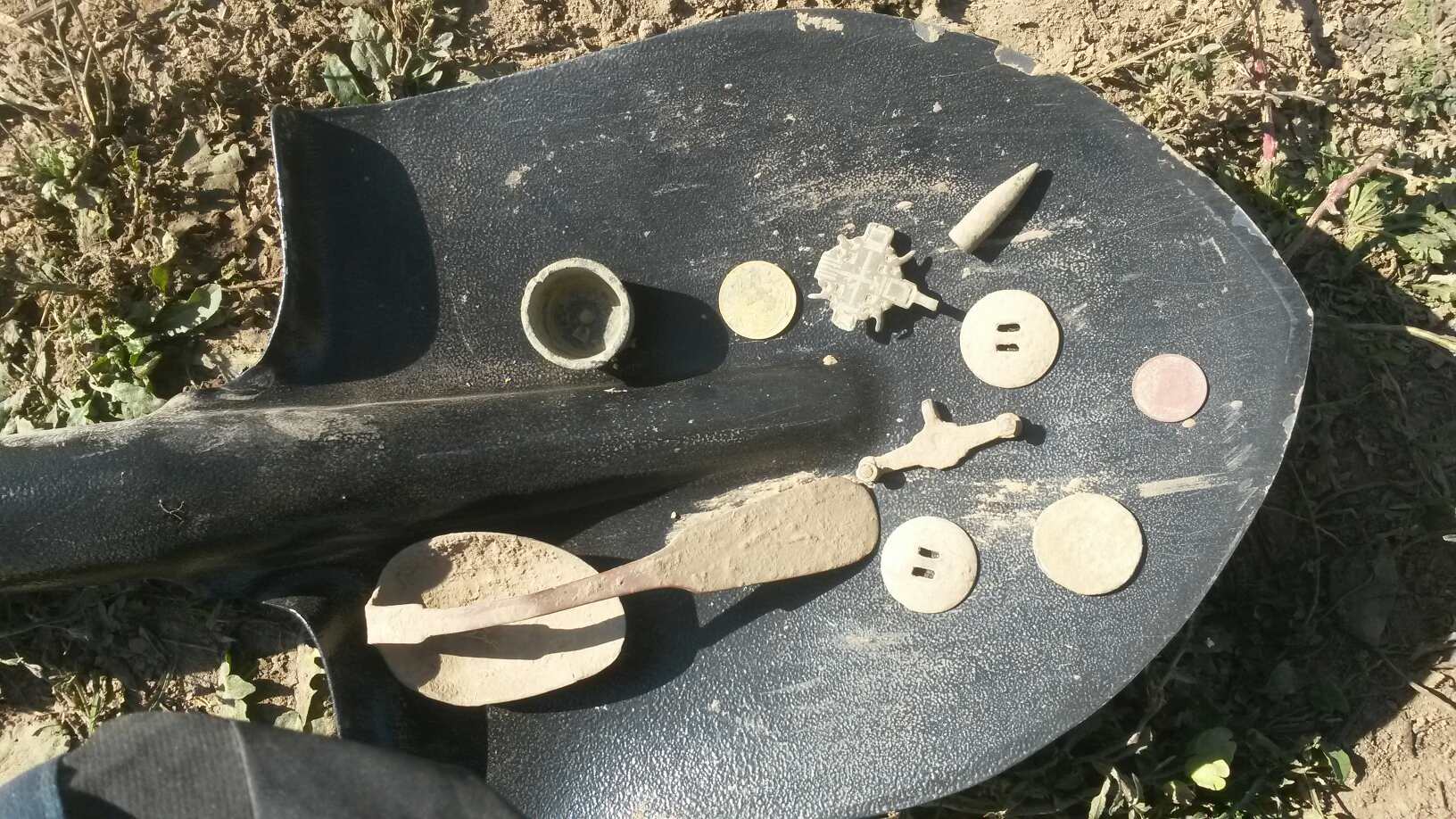 QUOTE(Zuluhulu @ Sep 25 2015, 21:28) Не много моей шляпы с первого поля, из монет: деньга 1731, 3 копейки 1930, 10 копеек 1932. На втором поле поднял интересный осколок колокола с кирилицей. Спасибо за компанию Илюх, смотрю на ложки тебе везёт, прут одна за одной -------------------- Oct12 2018