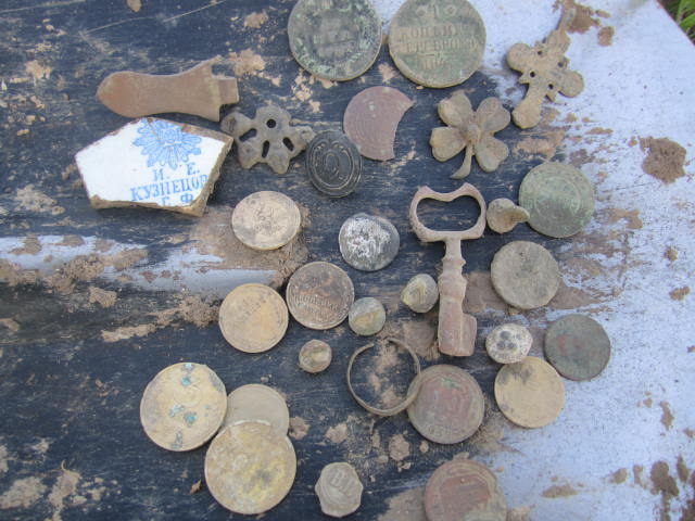 Всем привет. Ездил на неделю на смоленщину, коп не какой,поля заросли, распаханные и засеянные деревни тоже зелёнка по колено,решили с комрадом тупо пошурфить на угад одну деревеньку в лесу, пропала во время ВОВ. Пришли на неё, (по весне выжигали но до копа не дошло хватало других мест) высмотрели остатки фундамента, прошурфили метра 2, ииииии пришлось убегать, они с ножиком и с вилкой(мухи иии всех мастей) короче пока коп приостановлен временно, до холодков, по словам местных аксакалов в деревеньки жили 2-3 семьи богатеньких(круподёрка, маслобойка, пеньковые верёвки делали) ну короче сами понимаете, местных послушать просто богатеи на те времена, потом была рыбалка, баня, сон,тяжких грехов (чуть) короче как могли отдыхали. ну и вот мой выхлоп, комрад своё не позволил выложить, сам наверное где то (похвалится) что бы фотки не мелькали.....