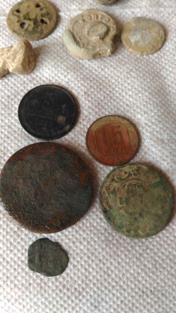 Копал и в субботу и сегодня: 10 коп.1923 билон, 15 коп.1941, и вроде 1 коп.николая2, год не видно. Фото завтра сожму выложу. Закрывать рановато, еще не замерзла земля |