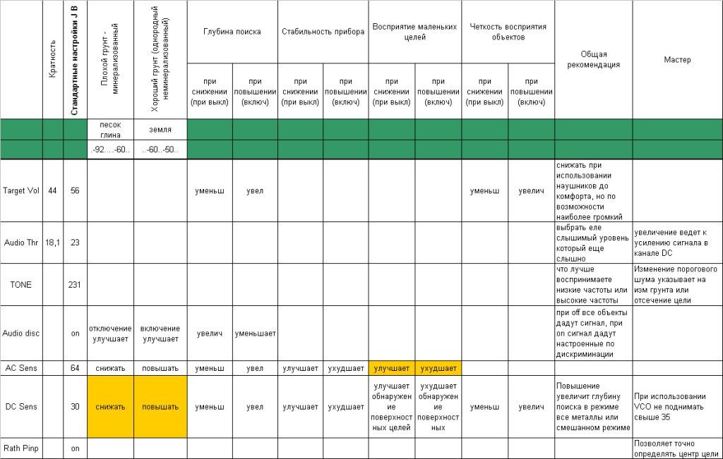 QUOTE(Letnab @ Mar 24 2015, 00:03) Так в файлах есть таблица, где эти основные настройки взаимосвязаны: смотрим на приборе значение Coarse, потом определяем, какие свойства у грунта преобладают: магнитные или немагнитные, далее определяем нижнюю границу приема ВДИ и чувствительность AC. Затем идем на шестую страницу данной темы, ищем сообщения Fedox'a с графиками зависимостей AC/PG и PG/DC (эти же графики есть у Mole Man'a) и определяем все остальное. Да, отключать Transmit Boost - это от лукавого, ни разу еще не выключал. только как выбрать нижнюю границу приема VDI? там 2 значения. И по какому графику выбирать АС и DC, 4х, заводские, или 1/4. |