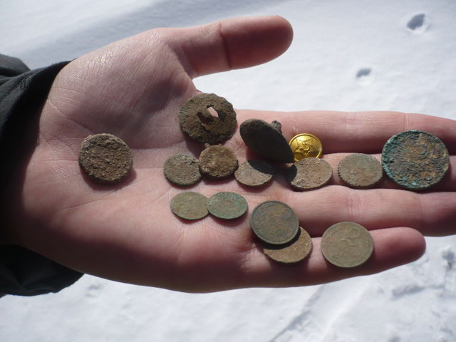 QUOTE(Scoundrel @ Oct 31 2012, 17:48) Мы с другом тоже на девятке ездием... Кидаем на дороге и вперед в поля))) Женя, привет! Кстати в позапрошлые выходные на Малеево, целая толпа приехала. Еле туда L-200 пробрались они. Буксовали ужос... QUOTE(matiz @ Nov 1 2012, 18:23) Какой-то неподвальный сохран Точнее не подвал, а подпол. В деревенских домах именно подпол. Сохран как раз похож. Медные монеты могут быть в идеале, но заражены каким-то толи грибком, толи плесенью. В альбом там или к другим монетам, лучше не ложить. На фото как раз эта короста/зараза и просматривается. -------------------- Жили весь век свой нищими
