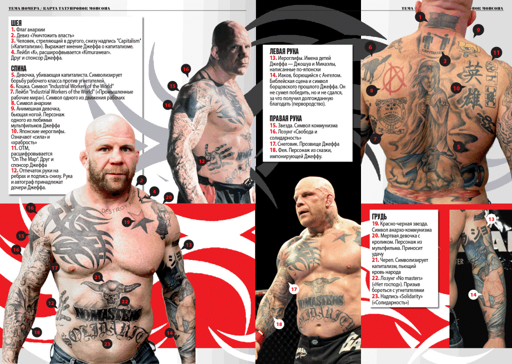 QUOTE(Кисса @ Oct 10 2013, 17:07) ..А по камуфляжу -не скажешь.... Да мне не в падлу... Просто отжигает.... ![]() ![]() Джефф Монсон называет себя анархистом и анархо-коммунистом. Так, в интервью он сказал: «Я анархист, тот, кто хочет покончить с классовой иерархией в обществе и теми институтами, что порождают это неравенство». Джефф состоит в ИРМ, его спонсирует AK Press, и у него несколько анархических татуировок на теле, среди которых (на правом плече) — русские слова «свобода» и «солидарность». ![]() ![]() Сообщение отредактировано AV.Sots: Jun 13 2017, 13:46 -------------------- Чем лучше узнаешь людей, тем больше нравятся собаки...