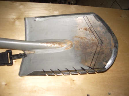 QUOTE(Мишка Квакин @ Feb 13 2013, 15:02) Доброго времени! Нет времени листать всю тему. Подскажите кто пользовался или пользуется:выбираю складную лопату, что бы помещалась в рюкзак. Интересует складной фискарь. Насколько надежная лопата? Нужна для копания грунта. Рубить корни, ворочать камни и т.п. не будет. Или же имеются в природе аналоги хорошего качества? Спину мою не жалейте, лопата будет использоваться в основном для разведопераций. Мой вариант укорочения телескопа. Задача была такой: -Укоротить телескоп так, чтобы помещался в стандартный рюкзак-чехол. -Хорошо заточить низ штыка и боковины, сделать «пилу» на одном боку штыка. -Сделать крепления для переноски лопаты на плече. Длина рюкзака-чехла у меня 85 см, длина лопаты в сложенном состоянии 105 см, следовательно нужно укоротить на 20 см. Осмотр разобранного телескопа показал, что укорачивать можно, максимум, на 15 см, далее нужно укорачивать пластмассовую ручку, что не есть хорошо. Отпилил 15 см. Толщина металла на ручке менее 1 мм, думал, будет больше. Затачивал штык болгаркой диском для шлифования толщиной 6 мм. Металл штыка достаточно твердый. Края получились очень острые, пришлось немного затупить напильником. Зубцы прорезал болгаркой отрезным диском толщиной 2.5 мм. Для переноски на плече просверлил отверстие на правой стороне верха штыка ( т.к. копаю – нажимаю левой ногой) отверстие 8 мм. В верхней части ремень прикрепляется петлей через ручку. На плече лопата висит удобно, до ног не достает. Общая длина лопаты получилась 89 см в сложенном состоянии и 105-110, точно не помню, в раздвинутом. В рюкзак лопата не входит, нужно укорачивать штык на 5 см, как видно на фото или менять рюкзак-чехол. Еще нужны «ножны» для штыка, т.к. получился он очень острый. Вложенные эскизы изображений |