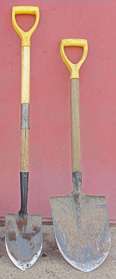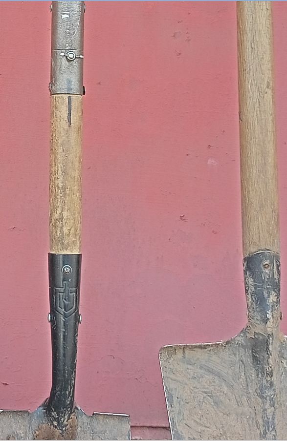 две лопаты от одного производителя, совсем были не дорогие, клеймо сделал покрупнее не реклама, покупалось давно, менялись только черенки, у меньшей черенок разборной для компактной переноски, к ковшам претензий нет совсем, про рельсовую сталь, по моему, там тоже что то было в описании, втулка черенка разрезная пружинит, при усыхании или износе черенка не телепается, постоянный обжим работает