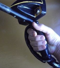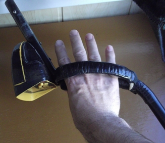 Хотя Аська-250...не тяжёлый прибор,но ..уже во второй раз,сделал гарду-лямку на рукоятку..Чтобы кисть и рука не так уставала..Думаю-для любителей Тайгера и больших катух..пригодится..Сделана из ненужной лямки от старого рюкзака..обмотана мягкой тканью..и промотана сверху изолентой..Прикреплена к ручке двумя кусками исскусственной бельевой верёвки..и на ручке..зафиксирована той=же изолентой..Можно размахивать клюшкой..даже не сжимая в ладони ручку штанги..