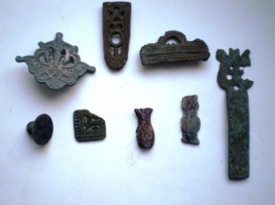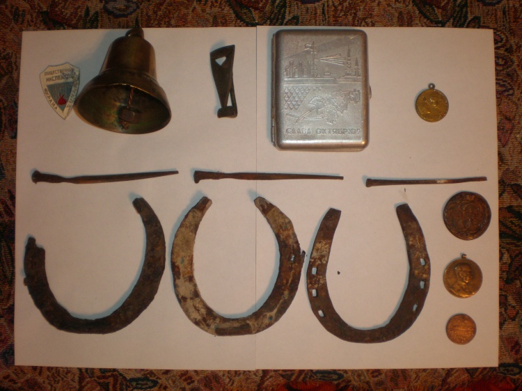 Вот почитал ваши рассказы и решил тоже написать... С самого раннего детств я все время смотрел себе под ногии за это получал от родителей.."чего ты голову повесил? , что ты там ищешь?, не сутулься! не шаркай ногам....." но все мои старания приносил свои "плоды" однажды в пыли я нашел 183 рубля ..если память не подводит было мне тогда лет 6-7 ..и было это в 1987-1988 году то что я находил мелочь больше чем остальные люди, родители не удивлялись ведь я всегда смотрел себе под ноги.... но вот однажды копали мы у моей бабушки картошку и нашел я значок инспектора по охране труда (см .фото, вверху слева) ...как он там оказался ни кто из родствеников толком объяснить не смог ... но поиск разных стариннх вещей пришел после переезда в славный город ялуторовск.. закончив институт, женившись, устроившись на работу ..решил я почистить сарайки которые принадлежали деду жены и устроить там гараж.. но очистка приподнесла следующие находки(см. фото) ....Колокольчики - 2 штуки(один жена-добрая душа, потом попались на огороде стариные гвозди, прошлый год начали осматривать стрые заброшеные дома которые планировалось сносить результат 3 подковы и одна медаль материнства без колодки истории оставшихся предметов на фотографии 1. монета 5 копеек - её мне подарила теща, эту монету спрятал прадед моей жены во вемя раскулачивния ..зажиточный был мужик , с этой монетой была спрятана швейная машинка Зингер и яловые сапоги ... 2. Медаль был подарена мне Коваленко Дмитрием - он нашел её на берегу реки Тура в центре Тюмени 3. Монета 1 копейка серебром была подарена Коваленко Романом - он нашел её когда копал картошку у бабушки жены в деревне Памятное, расположенной по соедству с нашим городком. Большое им за это сасибо!! Я не стал говорить что это нашел я ..тогда бы это было не честно по отношению к ним...но и по отношению к вам уважаемые единомышленики. В прошлом году при поездках на охоту был найден памятный камень с уведомлением что на этом месте была деревня ..место запомнили ..теперь хотелось бы и победить в вашем конкурсе ну или хотя бы занять второе место чтобы поискать на том месте СОКРОВИЩА!!!! Вложенные эскизы изображений |