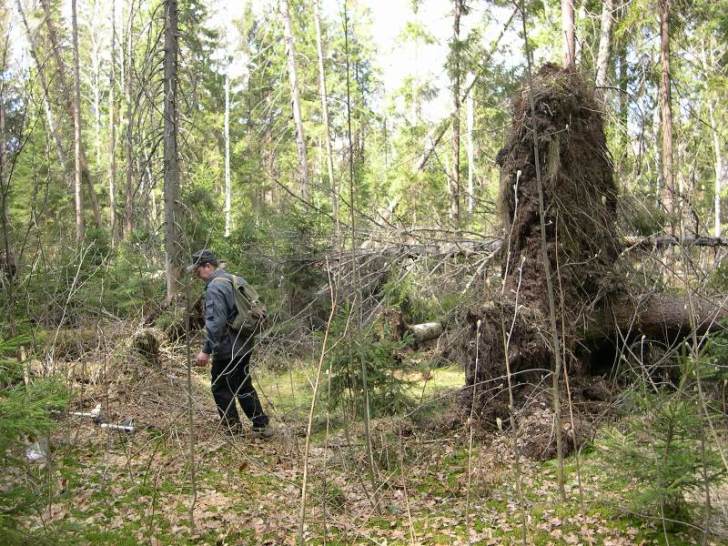 Густой хвойный бор с проседью робкой березовой поросли раскинулся сразу за деревенскими огородами. Раскинулся вокруг на многие десятки километров непролазными дебрями, глушью болотных мшар и торфяников. Случись идти лесом в темное время суток и до мурашек пробирает чувство какого-то первобытного страха. Все тут пропитано чем-то древним, неизведанным и тревожным, и эта тревожность почему-то снова и снова тянет сюда как наркотик. Что-то, до той поры мне неизвестное, тянуло в лес и деревенских. Иногда, ранним утром их силуэты с одними только лопатами дрейфовали в сторону чащи, растворяясь в узком проходе лесной дороги. Усталыми и грязными возвращались под самые сумерки. Чего они находили, никому не ведомо. Пролистывая в библиотеках старые советские книги, я изредка натыкался на обрывочные сведения по истории нашего края. Из них мне стало известно, что в нашем лесу когда-то было селение, на пригорке стояла церковь. Село насчитывало 50 дворов и славилось тем, что его обитатели на ближайшем касимовском тракте шерстили проезжающих на Рязань торговцев. Добро злодеи продавали, либо закапывали, десятую часть на прощение всех грехов в церковь несли. Потом снова грешили. К исходу 17 в. слухи о разбоях докатились до Первопрестольной. В итоге разбойников разогнали, а в церкви нашли награбленное, за что священника в кандалах этапировали на курорты Сибири. В 18 веке села уже не было, а народная молва не донесла до нас свидетельств его бесследного исчезновения. Деревенские усердно верили в легенду о разбойничьих кладах. Признаться, тема про клады и меня зацепила, давая богатую пищу для полета фантазии. Гордо осознавая себя человеком, знающим слово металлодетектор, я долго собирался с мыслями и, наконец, решился…. На майские праздники взял на прокат МД и рванул в деревню со своей второй половиной. И вот мы уже идем в сторону леса. Миновали ручей, «лысую» гору, по извилистой песчаной дороге входим в чащу. Метров 100 плетемся в обнимку, загребая сапогами песок. Включаю прибор, и катушка неспешно скользит над колеёй, сбивая с придорожных кустов невысохшую росу. Как-то по-особенному поэтичен весенний лес, наполнен свежим, дурманящим ароматом почек, хвои, сырой прошлогодней листвы. МД периодически взвизгивает, попадается проволока, пробки, фольга, вообщем, удовольствия полные штаны. Петляя, дорога уводит в дебри. Идем до низины, наполненной талой водой, потом подъем и … вот она, неприметная, поросшая можжевельником, лесная поляна. Говорят, тут когда-то была деревня, на холме в ореховых зарослях - древнее кладбище. Большая яма, заваленная старым хворостом и упавшей зимой березой, возможно подвал дома, или церкви. Высокий сигнал отвлекает от рассуждений. Копаю, в отвале грунта зеленеет копейка Петра, потом деньга, еще копейка…, радости нет границ. Вперемешку полушки 1735-36 года. Девушка окрикивает, показывая пальцем. Я оглядываюсь назад и не верю глазам, все ямы выстроились ровными линиями. Вот, линия идет несколько метров прямо, поворачивает в сторону, опять прямо. Что это? Увлеченный работой, не замечаю надвигающейся грозы. Отключаю прибор и без оглядки бежим домой. На опушке нас застигает немыслимый ливень, а раскаты грома бьют прямо над головой, словно подгоняя наш шустрый, весенний кросс. Через 10 минут до нитки мокрые влетаем в избу. Татьяна сушит одежду, готов