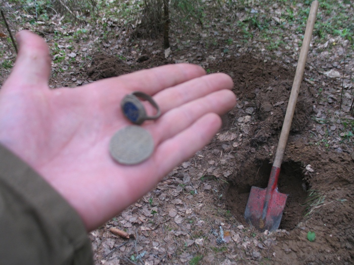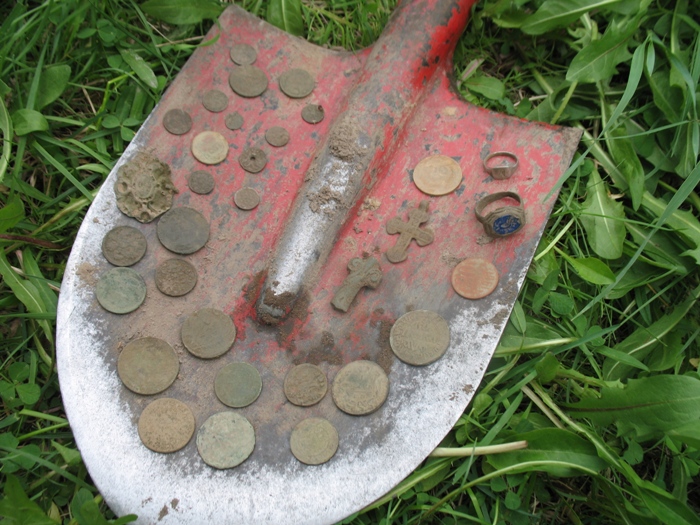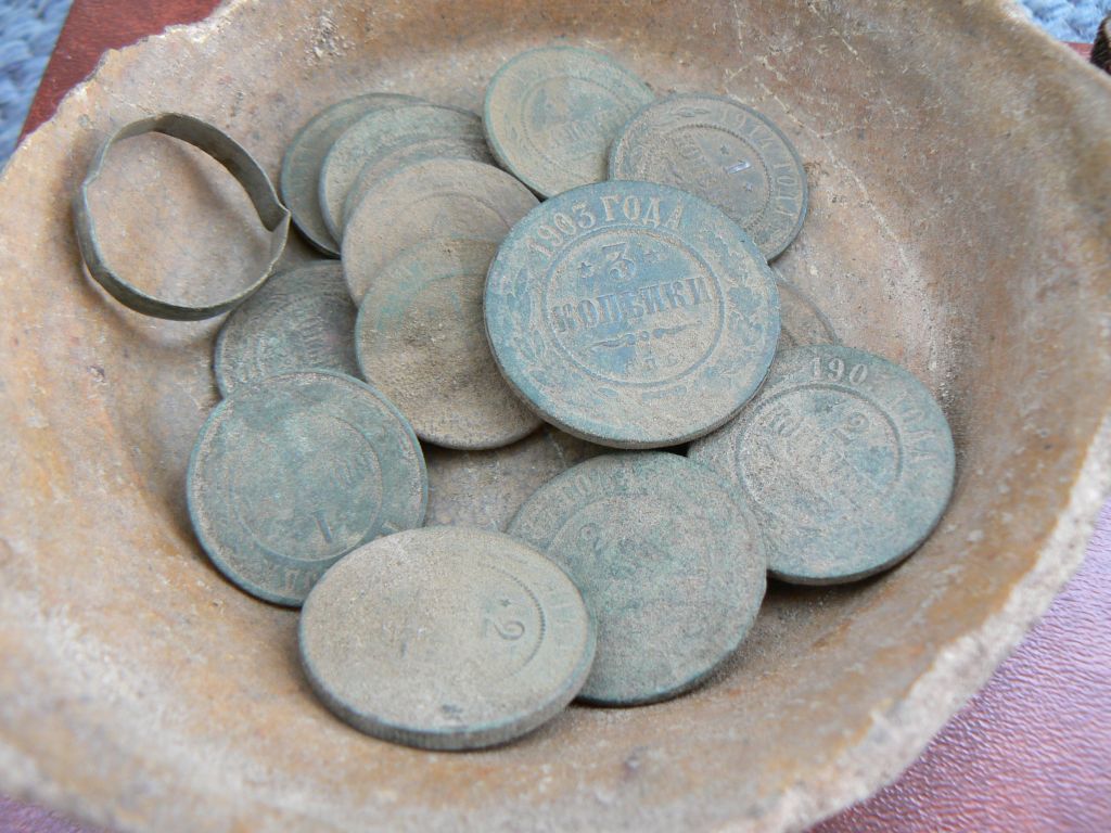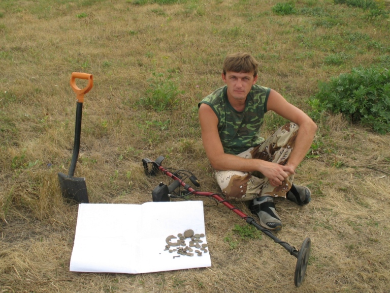 Как я пришел к поиску? Да я и сам не знаю, как-то спонтанно все получилось. А дело было так: Мой старший брат увлекался этим занятием уже давно, мне это было непонятно и чуждо. Рыбалка - вот моя страсть и увлечение. Ради нее я готов был ехать куда угодно, когда угодно и с кем угодно. Однажды брат предложил поехать с ним и его друзьями, впрочем, я их тоже хорошо знал, на «копалку», так он называл свое увлечение. Мой ответ был «нет», но далее прозвучало магическое слово «Дон». Они собирались разведать какую-то деревушку на берегу реки. А река, это синоним рыбалки. И я не устоял. Решено было ехать с ночевкой. Рассуждал так: -Пусть идут, копают свои монеты, а я на берегу рыбку половлю. И им хорошо и мне в удовольствие. Ранним утром раздался звонок. -Ало? Ты уже встал? Через 30 минут заедем за тобой, выходи со своими удочками. Через 20 минут я уже ждал у подъезда при полной экипировке. Загрузились, поехали. Приехали на место стали разгружаться. Каждый вооружился лопатой и прибором и был готов в бой. Вид их напоминал по меньшей мере картину «ОМОН на отдыхе» . Брат дал ценные указания, а как иначе, он ведь старший. -Игорек! Мы пошли на разведку, палатка на тебе, костер на тебе, машина на тебе. Блин, вот так всегда, все на мне, ну что за человек…. Ладно, думаю: валите, сейчас по быстрому поставлю палатку и на рыбалку. Вон уже и водичка манит к себе своим чарующим блеском. Поставив палатку, так сказать, обосновав лагерь и забросив костер на потом, я схватил спиннинги и помчался заниматься своим любимым делом, ловить рыбу. Но клев не задался. Как на зло, до обеда всего пару поклевок и то мелкий окунек. Решил переоснастить спиннинги на более крупную рыбу. Набил прикормкой пружины, забросил спиннинги, подцепил колокольчики и, поставив их на рогатульки, пошел перекусить в лагерь. Оттуда, с крутого бережка, наблюдая за снастями. Наблюдал доооолгоооо. Тишина. Клева не было. Колокольчики болтались на ветру что зря. Ни одного звонка. Бездействие и скука начали понемногу угнетать. Бесцельно слоняясь по лагерю, периодически слушая радио в машине, вдруг обнаружил сумку с прибором. Это был прибор брата. Он на «дальняк» всегда его берет. Запасной что ли? Ну, скорее всего так и есть- запасной. Им оказался (лась) Терка 34. Медленно и грустно привел его из разобранного состояния в собранный, вроде получилось. И пошел бродить. Неподалеку от берега было распаханное поле, вот туда и направился. Как говорится от нечего делать. Прошел добрую сотню метров, махая катушкой из стороны в сторону, прибор упорно молчал. Нет, я не забыл вложить в него аккумуляторы! И держал его той стороной! И вдруг первый сигнал. По большому счету не надеясь ни на что, принялся выкапывать. И ооооооооо! Монета. Зеленая такая, ничего на ней не видно, но это именно она - монета. Спрятав ее в карманчик штанов, побрел дальше. Пару шагов снова сигнал - опять монета. Дальше, веселее. Монеты выпрыгивали из-под катушки, иногда даже парами. Вот это «рыбалка»! Адреналин бил в голову как от увесистой щуки. И бил снова и снова, при каждом сигнале. Это уже была какая-то неудержимость. Как в том мультике про Раджу и золотую антилопу. Еще, еще, еще!!! Карманы со временем начали отвисать, пришлось свалить монеты в кепку и положить в местечко с ориентиром, чтобы потом не забыть где оставил. И снова в бой! Стало темнеть, я порядком подустал, нужно было возвр