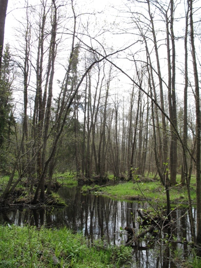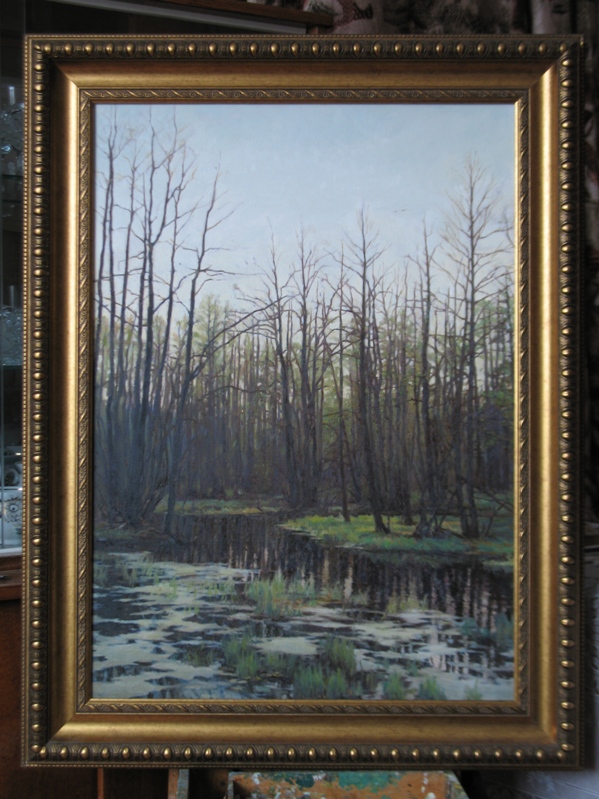 По-настоящему весенняя погода радовала глаз. Залитые солнцем луга обжигали зноем, заставляя раздеться по пояс, а с влажной травы поднималось терпкое, душистое испарение, которое окутывало топкие болотистые берега легкой дымкой. Кроме надоевших советских монет на полях ничего не попадалось, после чего я решил еще раз попытать свое счастье на затерявшемся в глуши леса урочище. Когда-то с этого места начиналась моя кладоискательская практика. Деревенские старожилы говаривали, что в далекие времена, на берегу болотистой лесной речки стояло крупное торговое село и деревянная церковь. Это было первое, известное мне место, куда я отправился незамедлительно, как только взял на прокат металлоискатель. Обилие находок для начинающего копаря было поистине впечатляющем. Урочище, казалось, «выбил полностью, исколесив вдоль и поперек» и уже не было надежды на новые находки. Следует отметить, что об этом месте никто не знал и я, по сути, был единственным и полноправным его открывателем. С раннего утра я на месте и до самого вечера брожу между колючих ветвей раскидистых старых елей, задевая штангой о многочисленные кусты и валежины. К моему изумлению в том месте, над которым столько раз проплывала тарелка прибора, снова звенят высокие многообещающие сигналы и заветная поляна продолжает радовать неожиданными сюрпризами, фотографию которых выкладываю ниже, а до кучи фото написанного мною пейзажа той самой болотистой речки, берега которой когда-то пробудили во мне кладоискательскую страсть и, в догонку, небольшое скромное четверостишие, которое навеяла мне последняя поездка на малую родину )). КОЛУШКА Я помню первое мгновенье Тех светлых, теплых майских дней Как зарождалось увлеченье Всевышней волей проведенья Беспечной юности моей: Я вновь иду путем приметным К заветной цели, там в глуши Урочищ ветхих след заветный. Под сенью крон в лесной тиши Уж не найти примет селенья, Лишь старых елей темный строй Хранит таинственный покой Во мраке полного забвенья Над безмятежною рекой. Что сталось с ним, никто не знает, Судьбу пропавшего села От глаз дремучий лес скрывает, Эпох прошедших пелена Покровом тайны укрывает Глубокой древности дела. Дорога в горку поднимает, Уходит вдоль низины вброд, Высоких сосен хоровод Меня торжественно встречает И взгляд заманчиво ласкает Теченье быстрых вешних вод. Катушки молчаливый ход Ведет заросшею тропою, Скользя над мокрою травою Болота топкого в обход. Я вновь вкушаю с упоеньем Птиц перелетных перезвон. Мгновеньем счастья окрылен, Я вижу здесь творца творенье - Природы чудные виденья, Лишь тут душой раскрепощен. И вот, приятное везенье - От мыслей сих отдохновенье, Прибор над кочкою застыл И лес аккордом огласил Высокий звук - души волненье, Я взял лопату в предвкушенье Находок ценных, то была Копейка старая Петра. Меж тем, прибор не унимался И мне приятно слух ласкал Веселых нот простой вокал. Я до темна в земле копался И на ночь бы в лесу остался Когда бы я так не устал. Весь день корней переплетенье Лопатой я перерубал, Когда ж трудов венец настал Меня склонило утомленье И сил почуяв истощенье На землю я сырую пал. В мерцанье звезд луна восходит, Она с безоблачных небес Сиянье мрачное наводит На мой безмолвный старый лес. Находки россыпью монетной В тоскливом отблеске луны Лежат достоинством полны На старом пн