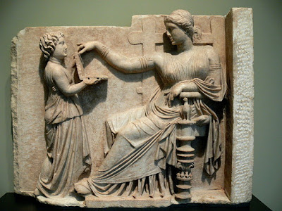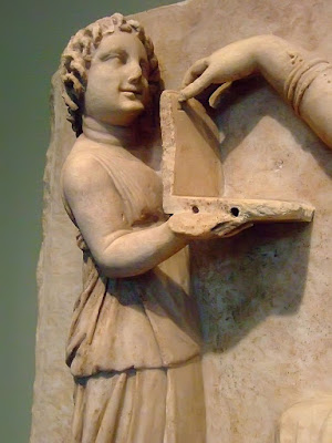 древнегреческая мраморная плита со скульптурным рельефным изображением, которая, как предполагается, была вырезана около 100 г. до н.э. на острове Делос, и ныне выставляется в J.Paul Getty Museum в Лос-Анджелесе, в США. Изображена на плите, ни много ни мало – женщина с...планшетом! Плита подписана ««Grave Naiskos of an Enthroned Woman with an Attendant», то есть «Могильная целла сидящей на троне женщины со слугой», и на ней этот самый слуга подает сидящей на троне женщине некий «гаджет», как две капли воды похожий на планшет! Толки вокруг целлы ведутся с 2014 года, когда она была представлена на канале StillSpeakingOut в youtube: некоторые специалисты ведут речь об OOPArt (out-of-place artifact, то есть, о, так называемых, «неуместных артефактах», невозможных с точки зрения принятой хронологии), а другие – так прямо о доказательстве того, что путешествия во времени – не продукт научной фантастики! Вложенные эскизы изображений -------------------- Я мзду не беру, мне за