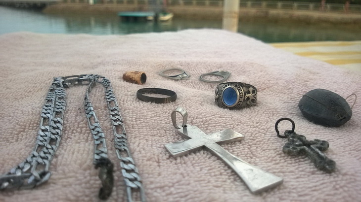 Так что вроде искать и можно, но точно законодательного подтверждения нет. Да и на каких полицейских нарвешься. Восток дело тонкое. Вобщем бдительность не отменяется. Я на вибре заклеил черным скотчем надписи на катушке про сокровища, на страховочном шнурке срезал нашивку с такой же надписью. В несетчатом , не прозрачном мешочке пустынного цвета оставил и не выкидовал кучку металломусора и гнилые окаменевшие монетки. Хорошие находки складывал в полиэтиленовый пакетик, который если что можно сбросить и показать только мусор со дна котрый я собираю как борец за чистоту и экологию красного моря. Кстати в отеле первый раз увидел плакат запрещающий бросать в воду монеты. Спросил у персонала, сказали что монеты гниют и отравляют море. (Это есть в законе №102 от 1992г.так написано на плакатах) Так что я очищал море. Очень странно, что нашел только один правильный браслет. Народ в отеле приличный, бухих на пляже нет, с золотом в воду особо не лезут. Может из за этого, а может уже кто и подчистил. |