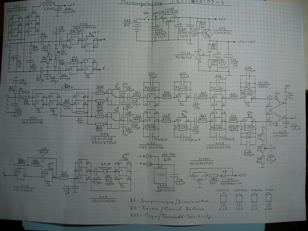 QUOTE(Часовщик @ Aug 7 2011, 13:50) .... Если датчик сбалансирован до 100гц, Как это сбалансирован до 100Гц? Сбалансирован он должен быть по остаточному напряжению (примерно от 20мв-до 100мв). А разница в 100Гц между катушками ТХ\RX берётся как начальная точка настройки(для удобства так сказать, чтоб знать от чего "плясать" при настройке шкалы металлов) QUOTE(Часовщик @ Aug 7 2011, 13:50) не работает дискрим и феррит получается вырезан на всей шкале. Добавляя ёмкость на Тх добиваюсь работы БГ - отсекает фиррит на 42к и работает дискрим (не отсекает аллюминий) должен отсекать водочные пробки закрутки. Нифига не настроено у вас. QUOTE(Часовщик @ Aug 7 2011, 13:50) Советский пятак видит 22см. В чем причина? Что посоветуете? Cведите баланс как положено, проверьте правильность включения катушек, а после этого уже контурными кондёрами(совместно с С12-м) вытягивайте шкалу металлов и чуйку к ним. Советский пятак должен видится по воздуху как минимум 28см(смотря какой датчик конечно). |