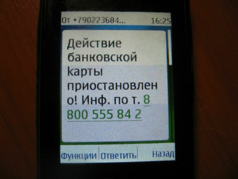 QUOTE(ВИК-ТОР @ Nov 24 2016, 22:18) Сегодня получил СМС. Привожу полный текст - Ошибочное списание (...) Ваша карта заблОкирован@. тел. 8(9063) 472-017 Номер с которого пришло сообщение +79684643482 Такое впечатление, что писал малограмотный пацан. И они уже занялись? Достойная смена подрастает В тУрмах не все с высшим образованиях сидят... -------------------- Одна голова - хорошо... две - лучше... а три - мы не прокормим...