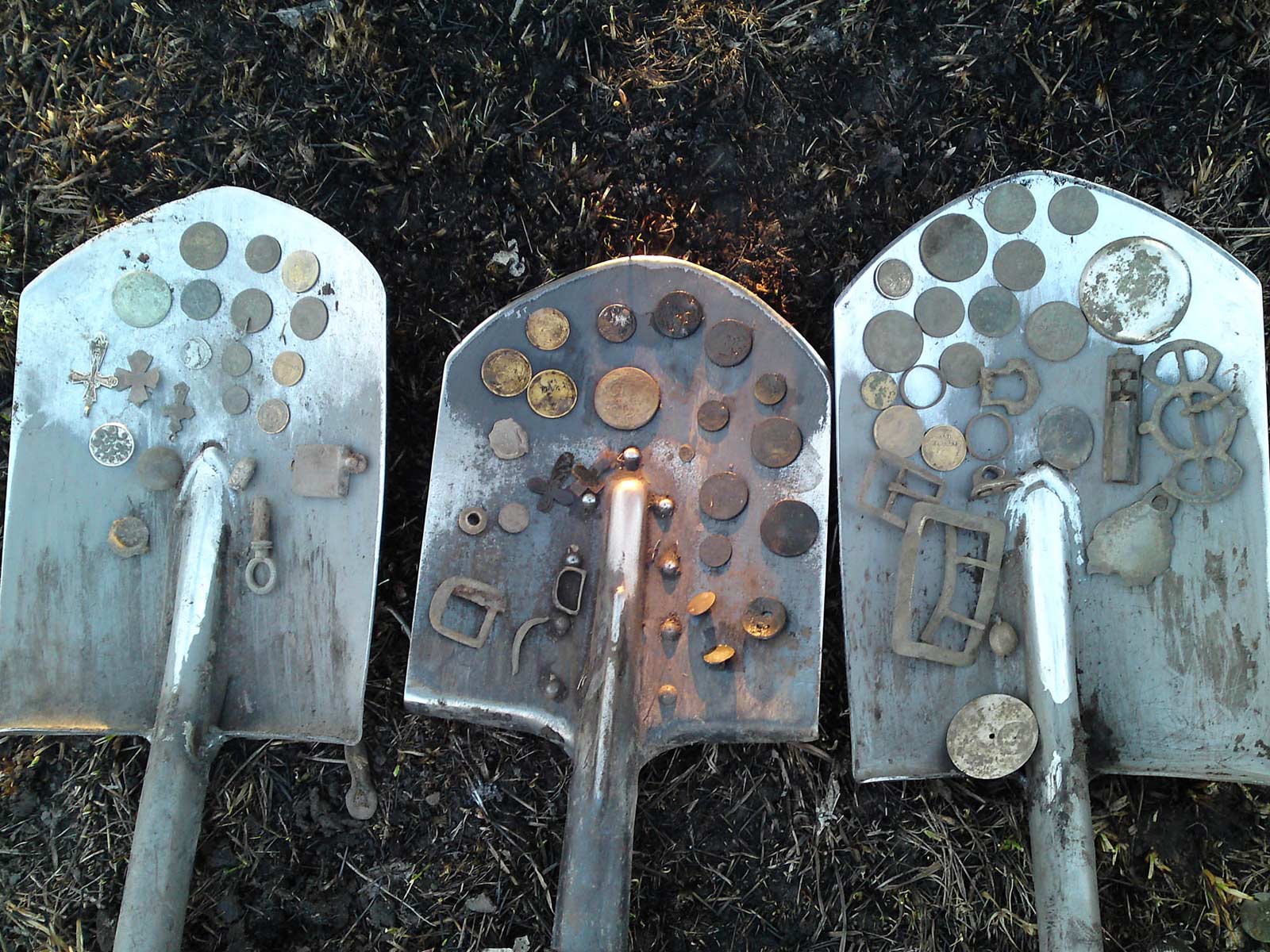 QUOTE(Руся @ Apr 12 2011, 01:26) З.Ы. olegpan Вам ещё не хвастал - залезте в находки, там есть моя темка. Сорексом наковырял. Темки там 2 моих, Вы как раз переживали за крупняк и золото - обе в тему! По золоту не переживал, этот зачет осенью сдал А вот с крупняком все не так просто. Прихожу к выводу, что крупняк с частотой 6,5 браться толком не будет - ни на одном приборе. Для примера вчерашнее фото с копа, выбитые места, бегали везде как сайгаки. Лопаты слева направо - Терра-70 с ДД, посередине моя, справа Эксп СЕ с большим эллипсом. Сразу видно, что Эксп сильно впереди Т-70 и Кондора по крупняку - серебрянные части от часов, довольно массивные пряжки. И это не единичный случай, так постоянно. На этом Экспе проблемы с мелким низкокачественным серебром типа динариев и советских билонов, но по крупняку он впереди. Возможно, что Кондор с 3кГц сможет показать сопоставимые резы, но не ходить же с ней все время. Для многих целей она не приемлема. Сообщение отредактировано olegpan: Apr 13 2011, 10:17 Вложенные эскизы изображений |