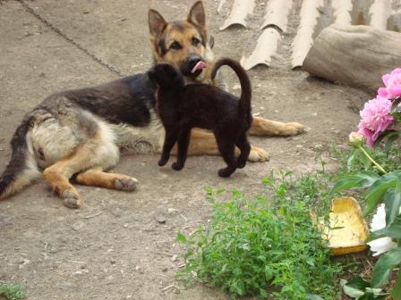 У нас КРОМЕ корсы Юны, еще кот и кошка. Кот толстый и мудрый. А кошечку, жена принесла около года назад, подобрала в деревухе. Кошка худая и мелкая а ест как слон и все подряд. Как только жена идет на кухню, та за ней и