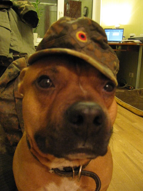 А вот вам мой злодей. Хотя добродушней собаки нет к людям. А вот других собак мужского полу жрет без разбора. Кошки пофиг, был кот дома в течении года, так котяра его гонял.