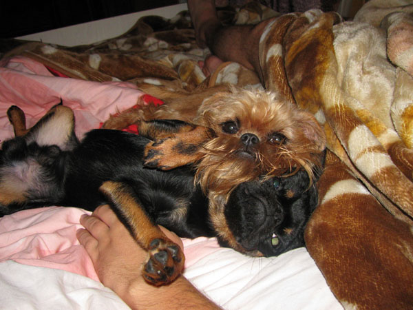 Поскольку мы живем загородом и в своем доме, да еще и состоим в питомниках, то количество животных у нас вобщем то несколько больше, чем могло быть в городе Начнем с собакевичей: Брюссельский гриффон Ребекка Брабантский гриффон Имхотеп Йоркширский терьер Юкла (родословное имя писать не буду, язык сломаете Сладкая парочка: Название питомника в именах специально не пишу, что бы за рекламу не посчитали. Сообщение отредактировано Negator: Oct 27 2010, 10:10 -------------------- Bad as I wanna be...