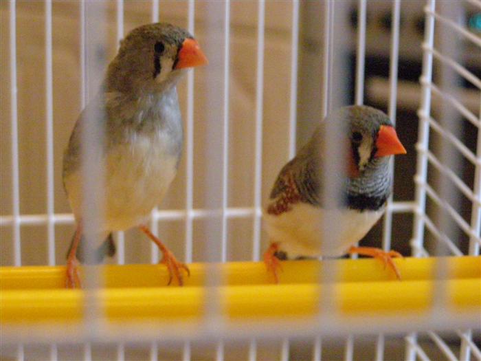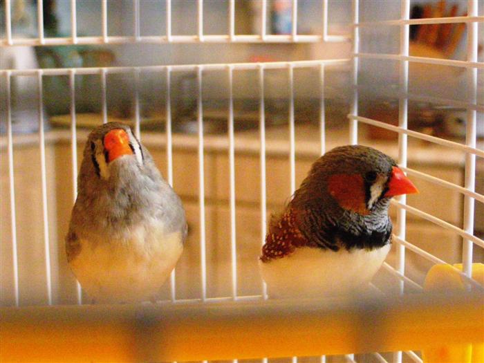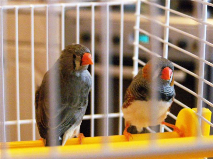 Вот наши зёбровидные амадины Саша и Маша (австралийские ткачики больше на воробьев похожи) знакомые парочку нам подарили еще птенцами, сейчас им 2 года, более занудных птиц я не встречал, утром после 7 00 начинают кричать хоть с дому беги, не поют, а крякают или мяукают, самочка несется как пулемет строчит