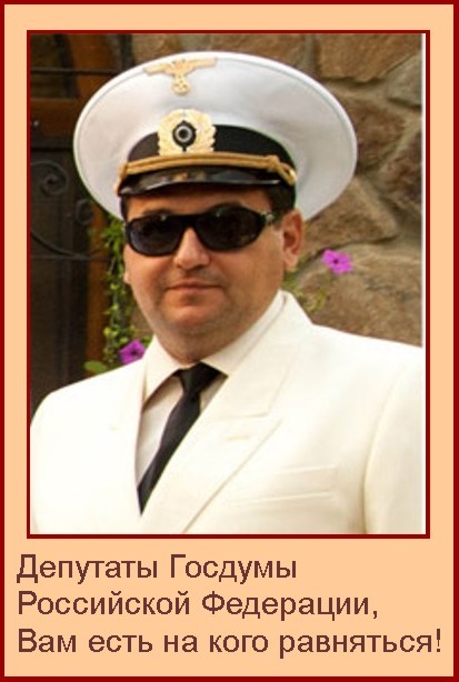 Автор данного законопроекта пару лет назад достаточно весомо продемонстрировал свой патриотизм. В городе –герое Волгограде он, будучи уже депутатом Госдумы, появился на свадьбе своего друга- однопартийца , ни больше, ни меньше , как в форме аналогичной форме гитлеровского адмирала, руководителя абвера Вильгельма Канариса . Любопытно что в то время г-н Михеев откровенно высказывался, что является его поклонником. Да и помощники сего депутата были замечены в Волгограде дефилирующими в форме солдат и офицеров вермахта.Видимо тоже разделяли, так сказать, чувства своего шефа. Когда скандальные фото появилось в сети ,Михеев естественно заявил ,что это фотомонтаж .Но четыре экспертизы и суды подтвердили подлинность фото... Вообще сей господин личность неординарная . В 90- е был судим за спекуляцию(ну это по нынешним временам почти героизм времен войны). В настоящее время , после лишения его депутатской неприкосновенности(не путать с лишением мандата депутата ГД), в отношении его СК ведется уголовное расследование по статье "мошенничество"… Похоже это и пробудило в нем всплеск патриотизма... Вложенные эскизы изображений |