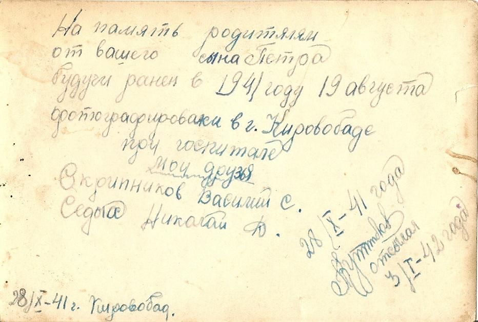 QUOTE(Колумб @ Dec 7 2013, 20:53) Качкаев Виктор Нестерович. Фото - за месяц до войны( 26 мая 41г. г. Лубны), там и начал службу(Белая церковь , вроде как под Киевом ) Версии: там же и погиб, пропал без вести. Здравствуйте! Я исследую судьбу студентов и выпускников Алатырского художественного училища. В архивном фонде есть документы на Качкаева Виктора Нестеровича, 19.07.1918 года рождения, уроженца села Кечушево Козловского района Мордовской АССР. Учился с 1937 по 1939 годы, пока не призвали в армию. Хотел у Вас уточнить, может это Ваш родственник? |