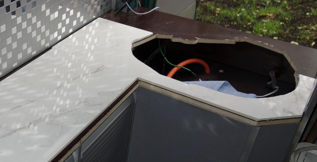 НО!!!не идеальная.. я к ней прицепил шланг гофру к пылесосу и если на улице не могу отпилить, типа дождь идет то могу и дома.. пыли получается мало на пространстве 3Х3 метра.. меееелкая такая... пилил даже стальной квадрат трубу 80 мм... диски у нее улетают вмиг.. НО!!!нихрена не видно место пропила.. за счет кожуха там в нем искры по кругу начинают летать..жесть..))))) быть внимательным с пилением алюминия.. он же очень теплопроводный... а подошва у этой пилы-болгарки пластиковая.. я чуть свою не попортил.. алмазным диском работать ЧУДО!! как кисточкой.. лишнее убираешь..фасочку снимаешь... вот на фото как я столешницу подгонял под газомойку... Вложенные эскизы изображений -------------------- Относись к жизни проще...живым из нее все равно не выбраться !