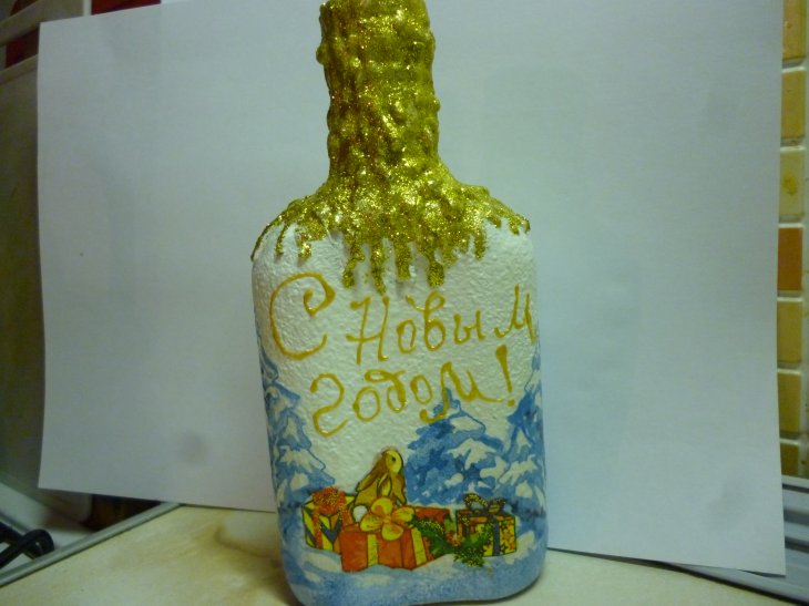 А ещё можно, наверное, изображать не только новогоднюю тематику, но и нашу родную - монетно-кладо-искательскую... Уверен, что бутылки с нарисованными горами серебряных рублей будут смотреться ещё краще и даже чуть-чуть восхитительнее...