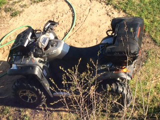 Квадр и летом прекрасная штука,бревно прицепил травку примял