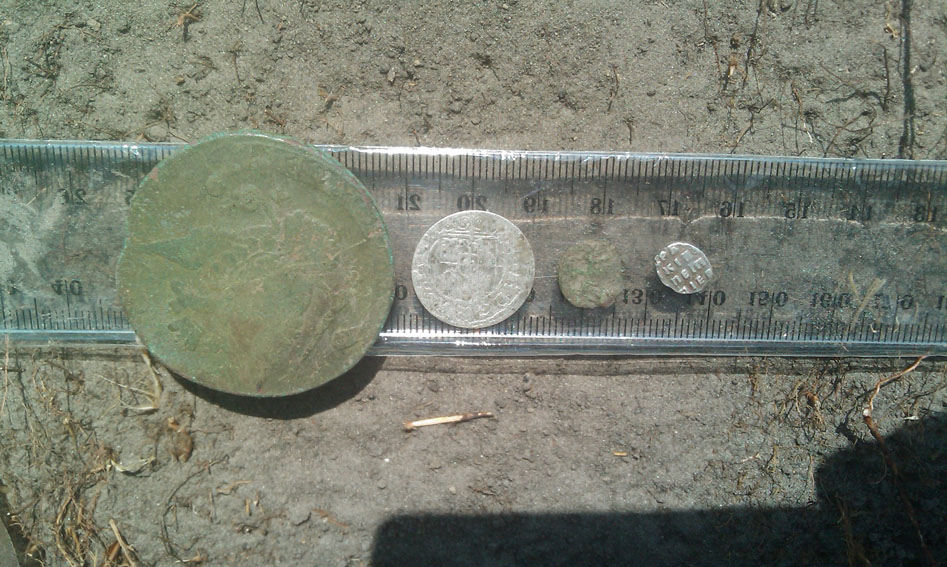 Выехали на хутор где есть медный бунт , там и решили испытать. Сначала сделали тестовую площадку, грунт не чистенькая супесь , а нормальная поселеньческая земля, естественно без железа кусок нашли. 5 коп катькиных на 40 см не взял ни кто, на 35 см Спектра взяла четко , плюс еще можно было поднять катушку на 2см над землей, до потери стабильного сигнала. XP-Gold цеплял монету на грани срыва вплотную к земле. Лаб не увидел. Чешуйка петра XP-Gold уверенно брал на 15 см и еще над грунтом можно было поднять катушку на 2см . Спектра брала чешуйку только при работе на частоте 22 кГц и вплотную к земле ,не очень уверено. Лаб не видел. динарий Ягелоньчик XP-Gold и все остальные видели на 15 см уверенно , на 20 см голд брал на грани срыва, спектра не видела вообще. полторак на 25см голд видел уверенно с запасом в 2-3 см. Спектра не очень уверенно и катушка вплотную к земле. Дальше было принято решение не шарахаться по траве, а походить по грунтовке которая идет через хутор. Т.к. место хожено перехожено и железом замусоренотак что в страшном сне не преснится и на грунтовке монет для лаба , Спектры и фишера 75 уже небыло. Итого выхлоп, голдом в течении часа медленного и вдумчевого хождения туда сюда по дороге было найдено 6 чешуек и две плостинки медные по размеру похожие на чешуйки, итого 8 предметов с участка который для остальных приборов умер. Кстати гвоздей и прочего железа было выкапано примернр столько же. Впечатление, прибор приятный в работе но дискрим у спектры получше будет. Как и многими писалось раньше идеально подходит для железных мусорок. Вложенные эскизы изображений |