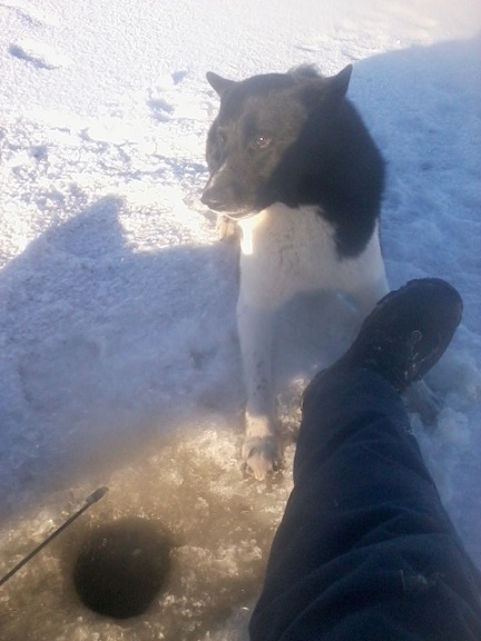 -28 вчерашняя рыбалка на блесну.... с группой поддержки.итог-1 щук и 1 окунь..все съедено группой поддержки прямо на льду